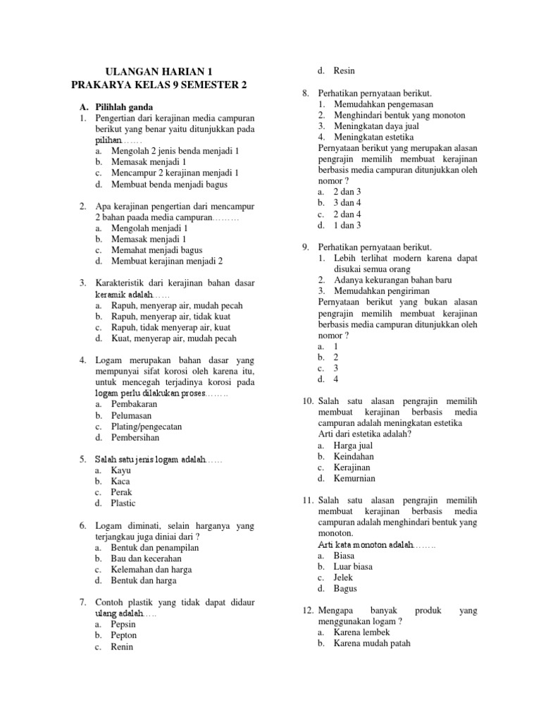 Soal Kerajinan Media Campuran Ix