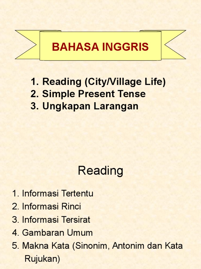 Bahasa Inggris 1 Reading City Village Life 2 Simple Present Tense 3 Ungkapan Larangan